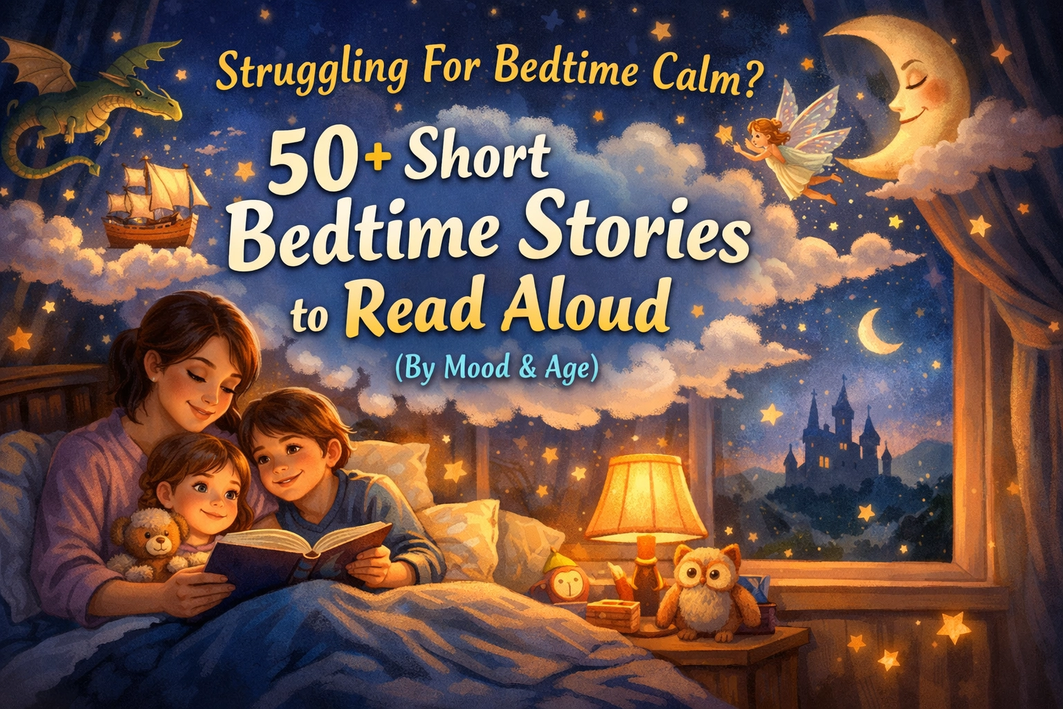 Struggling for bedtime calm? Discover 50+ short bedtime stories organized by your child's mood and age. Stories for wired, anxious, silly, and sleepy kids.