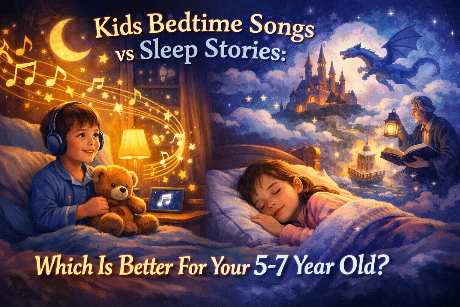Discover whether bedtime songs or sleep stories work better for your 5-7 year old. Learn the benefits of each and how to combine them.